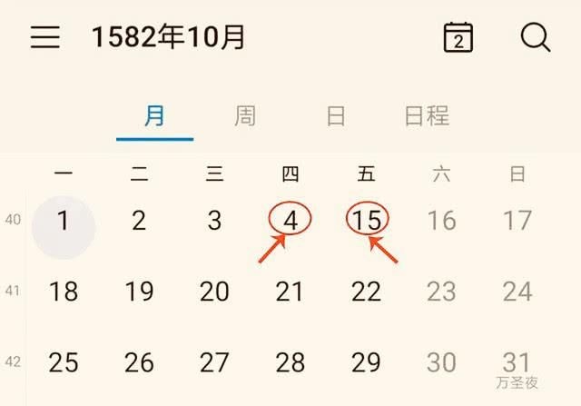 自从人类发明了时间的概念,时间是不可逆的,过去的每一分每一秒都无法重复。 不仅时间不可逆转,它还在一天一天地计算着。 但是如果我们把手机日历调整到1582年10月,我们会惊奇的发现,当年10月的4号到5号没有任何流程,而是直接从4号跳到15号。 这一年究竟发生了什么?