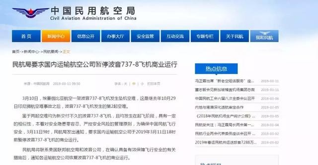 今天上午,中国民用航空局发布通知,要求737MAX暂停运行,今日737MAX执飞的北京出港航班已经全部调整为737-800执行。