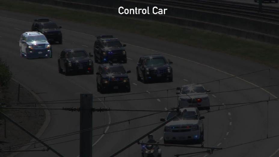 安保包裹的领头车是美国特勤局的电子对抗车雪佛兰萨博班,它行驶在安全包裹前方,用于干扰路上可能出现的遥控爆炸装置。