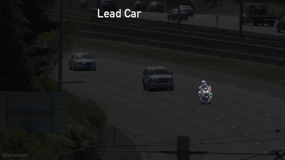 它的作用是引领车队前进,但它并不是车队的第一辆车,我们在这里没有看到的是封路车,它比前导车提前行进五分钟。