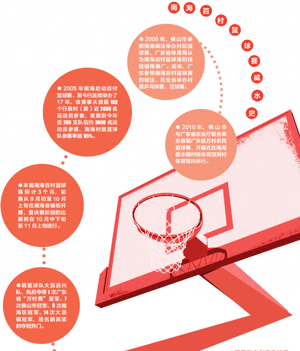 本届南海百村篮球赛吸引了南海近280个村居组队参赛、约3000名运动员上场施展球技,村居参赛率超95%。初赛从9月初至10月上旬在南海各镇街开展,复决赛阶段的比赛将安排在10月中下旬至11月上旬举行。