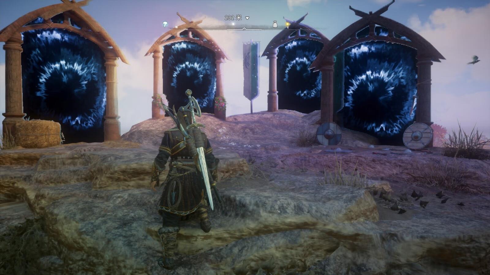 第一个门过有雕像的,之后会传送到天上,爬几个石阶梯。