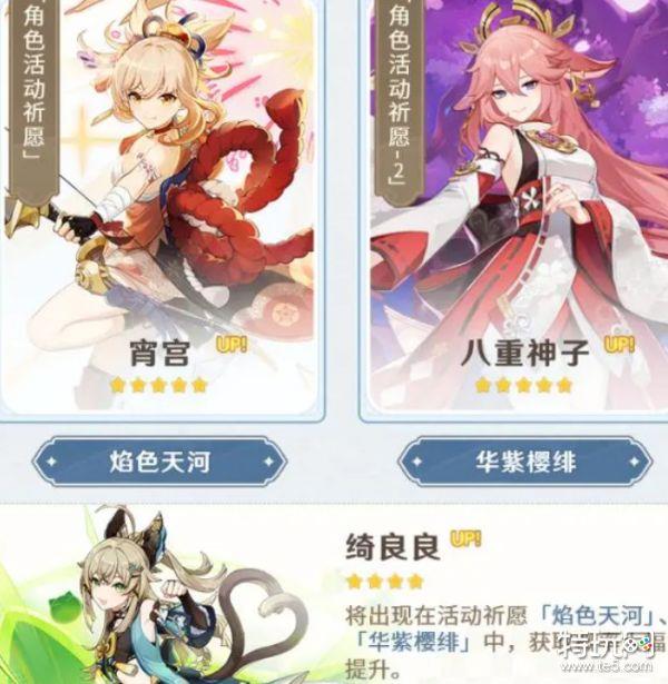 3.7版本up池角色:宵宫+八重神子+枫原万叶+艾尔海森(+绮良良)