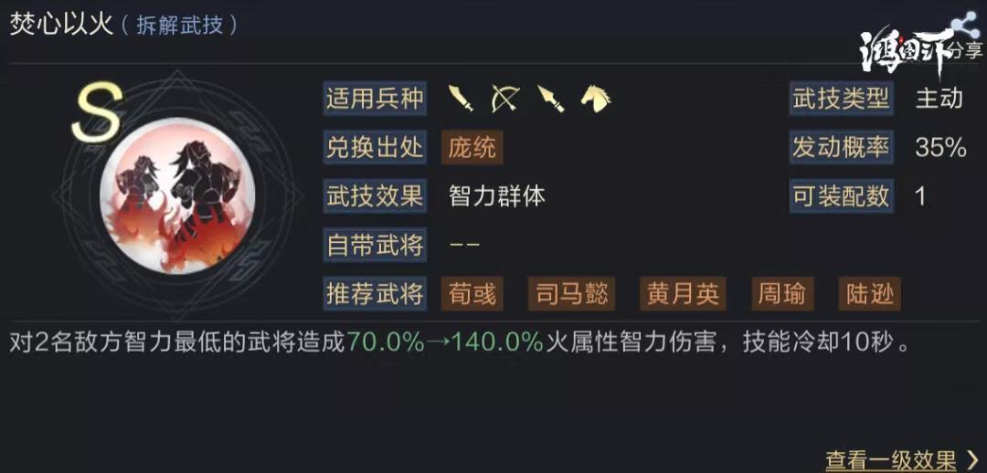 2号武技推荐焚心以火,该武技的具备CD短,火属性伤害的特点,非常适合单核法师阵容快速输出。