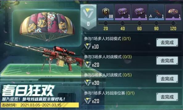 春天到了,还不燥起来!春日狂欢活动即将于3月5日正式开启,战士们只要完成指定任务,就能获得奖励积分,兑换史诗级降落伞-醒狮、稀有级武器Arctic50-金牛献瑞、鸿运喜乐宝箱和金币奖励!