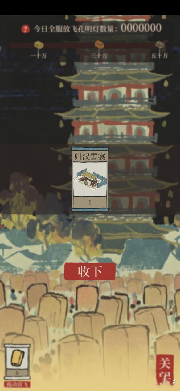 6、全服放飞【孔明灯】达到10万、30万、50万时,即可在【灯会】界面领取额外奖励。