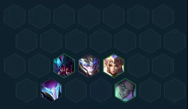 3、过渡推荐:男刀+梦魇+猪妹+皇子+挖掘机组成3海克斯2格斗2刺客2强袭;