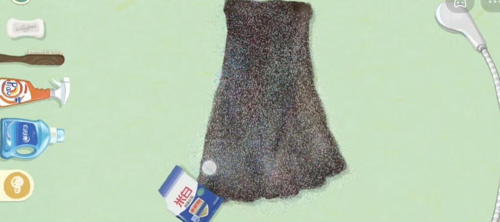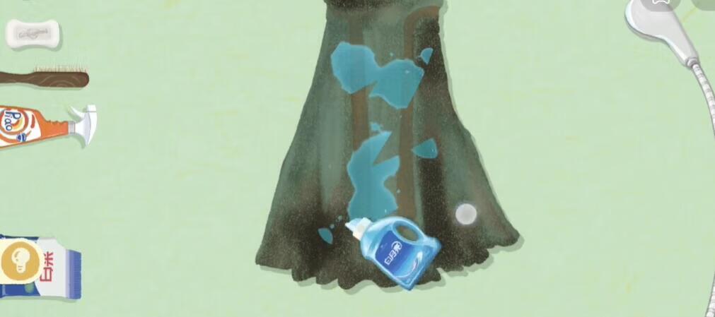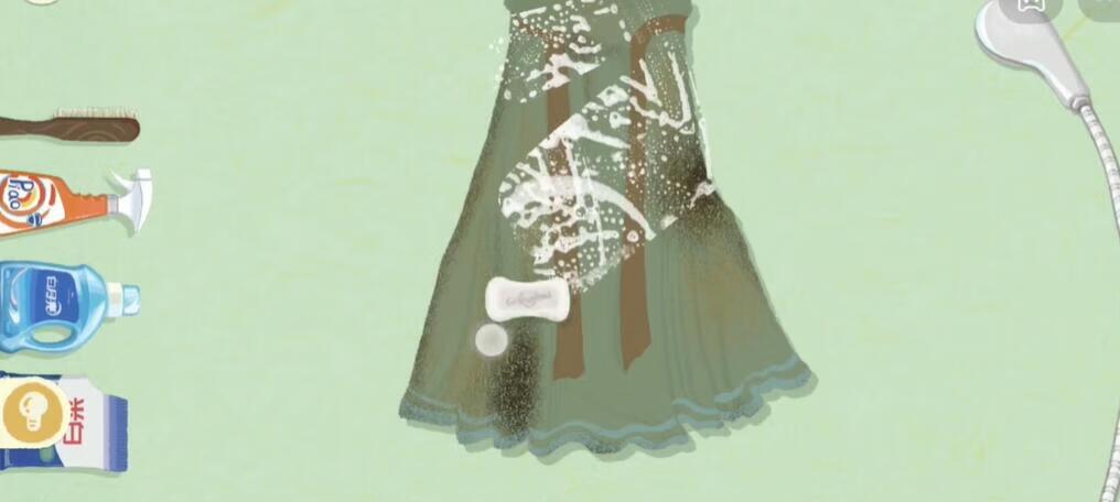 1、首先我们将洗衣粉倒在裙子上,再用刷子刷一篇,用水冲干净。