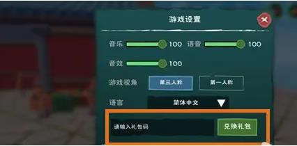 2.在游戏设置界面下方,有一个输入礼包码的输入框,点击输入框,把你获得的兑换码复制进去,再点击【兑换礼包】即可获得礼包的奖励啦;