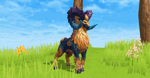 脖颈、四肢与短尾上被棕黄长毛覆盖,身上带着神秘符文图案,整体看起来威风凌凌。