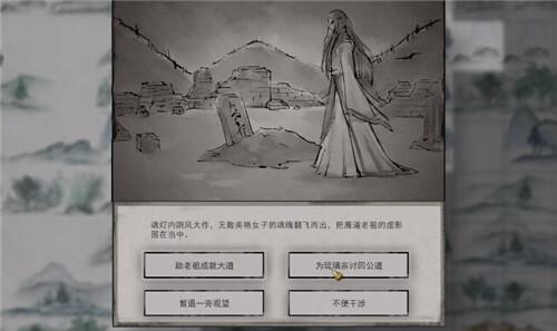 随后在魂灯中的冤魂,想让我们帮她复仇,前往魔宗遇到魔头之后,如果你选择“不便干涉”,会获得气运“冤魂遗恨”,会降低15%的攻击力持续三个月。如果你选择“暂退一旁观看”,什么都不会发生,冤魂缠身也会消失。