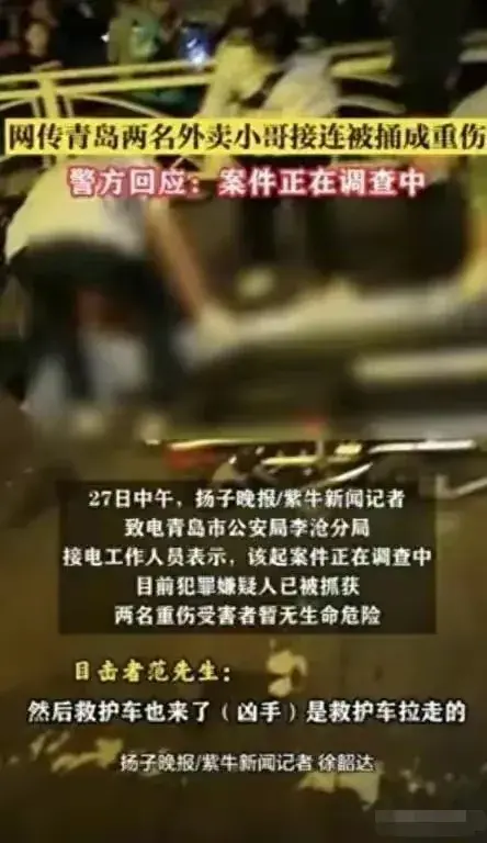 青岛突发命案:两外卖员遭捅伤,场面惨烈!