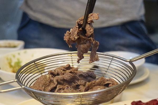 新鲜的牛肉勿需涮烫过久,最佳时间是6~8秒。