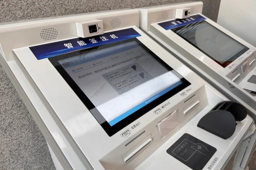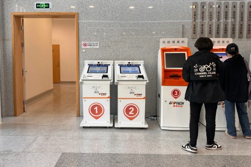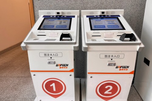 家乡江苏常熟,出入境窗口这边有2台自动签注机。