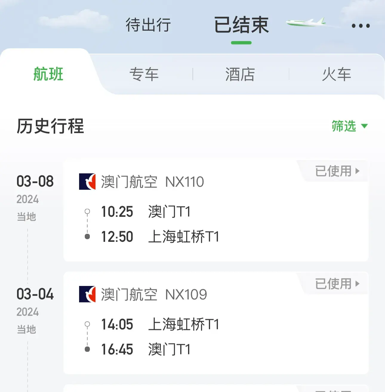 上一次澳门旅行,是2024年的3月4日到3月8日,五天四晚。当时是因为抢到了澳门航空699元往返含税的机票,特别的划算。