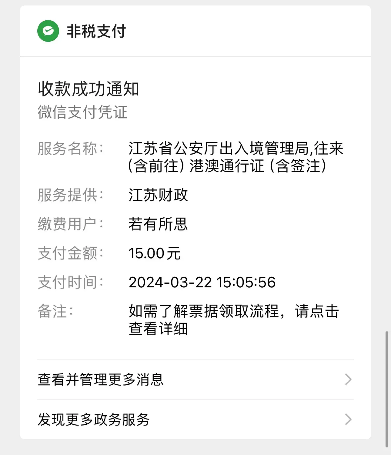 把原来的港澳通行证插入插口,人脸识别后付款,2分钟就办好了。但是香港签注可以办理2次往返,澳门签注只能办理一次往返。