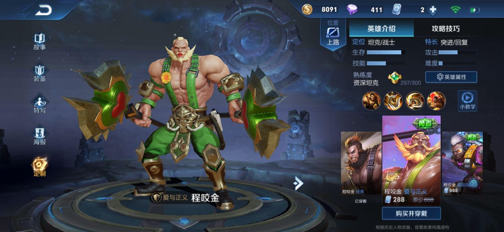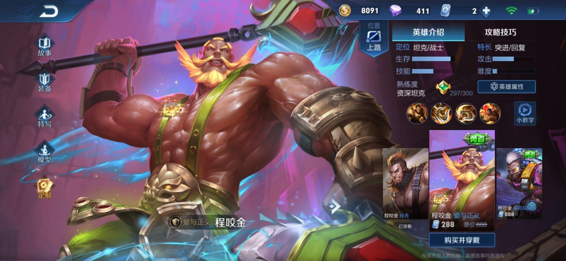 程咬金这个英雄大家应该说是非常熟悉了,大家对这个英雄的第一印象就是有点丑,而到目前为止这个英雄已经出了四款皮肤了,其中最有趣的一款皮肤就是今天小编要讲的"爱与正义"了。