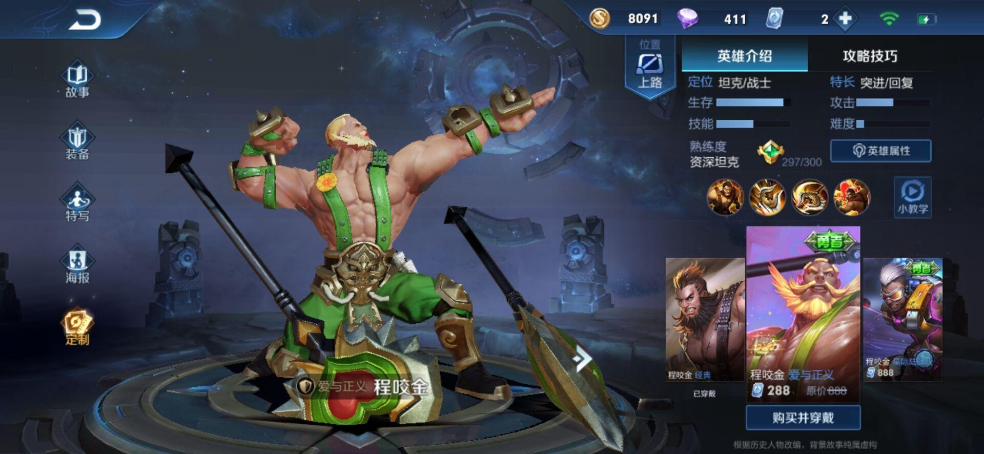 王者荣耀里面基本上各个英雄都会有自己的皮肤,可以说是非常多种多样,英雄的皮肤特色也是非常鲜明的,有的妩媚,有的俊美,还有的高大威武,但是要是论最有骚气的一款皮肤非我们老程的这款"爱与正义"。