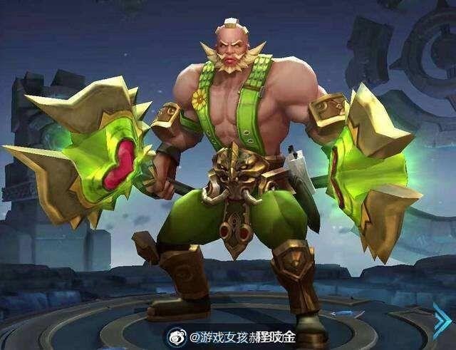 嘴唇也像个香肠样的,可以说这么丑的造型,女玩家指定是不喜欢用这款皮肤了,不过当时好像还出过程咬金口红色号来着,而像这种坦克的英雄,基本上都会有一个很明显的特征,就是身上的肌肉很是发达啊,看来男同胞应该是很羡慕了。