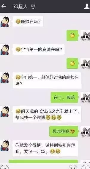 要不说娱乐是个圈呢,邓超自己也有让别人做宣传的时候,看看他为了让鹿晗做宣传,真是煞费苦心,最后还不忘调侃一番,把自己的面子给挣回来。