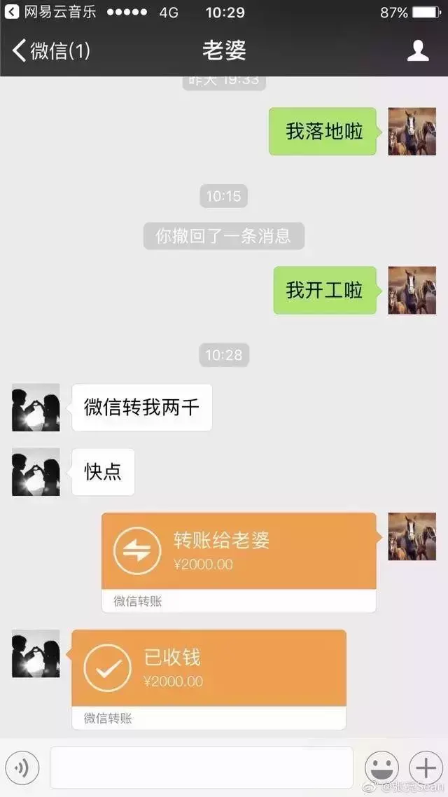 落地、开工都和老婆报备,好男人无疑了,吃瓜群众正感慨好甜蜜时,可老婆话锋一转,微信转我两千,快点,张亮也是以迅雷不及掩耳之势快速打钱,没有废话,默契可见一斑,真是不会做饭的模特不是好丈夫啊。
