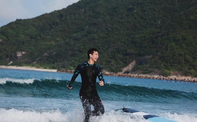 李现分享冲浪照片好帅气,但我注意的却是它的脚,这也太晒了吧