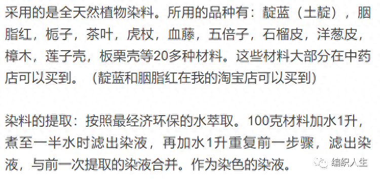 【相关问答】问:想请教下用什么固色?答:天然染色没有固色这一说。主要是使用媒染剂和反复染色来达到固色的目的。同时,由于天然染色耐光性差,可以添加一些抗氧化的植物染料,以提高色牢度。问:如果在段染线上染色,有可能配出来比较脏的颜色吧?具体就是一种棕黄,白,褐色,棕红的段染线,因为已经有深色了,再染的颜色可能不能覆盖原色,而出现一种显脏的颜色吧?线的质地特别好,颜色不太满意,所以想折腾一下。答:植物染料不会遮盖,只是融合,只能加深不能变浅。棕黄是可以染的。• end •作者 | 放马南山图 | 编织人生论坛