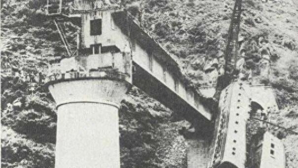顷刻间,列车头堕落而下,紧接着,两辆机车、13号行李车、12号邮政车和三辆客车车厢(9-11号),坠入大渡河中,9号和10号客车车厢侧掉在岸边,8号硬座车厢在隧道内被强大的冲击力撞出铁轨,翻覆在隧道口。