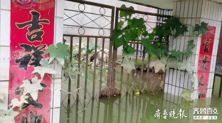 “这里是最深的地方了。”划船进入村子,能看到众多房屋被泡在水里,旁边一座一层的平房已经被淹掉了三分之二,水位虽然有所下降,但村里最深的地方还有两米多。