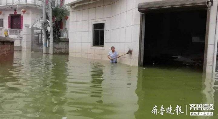 15日下午5点多,干了三天,陈光明的清理工作完工,随着洪水下降,家门口的平台也显露出来。休息了一会后,陈光明带领齐鲁晚报•齐鲁壹点记者探访了部分被淹的江家岭村。