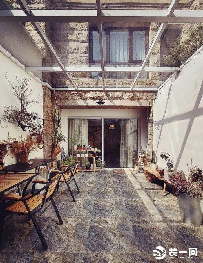 开放式的露台选用青石板,更接近自然,还原露台本身气质。青石板有一个特点就是防滑耐磨且平整度非常高。其丰富的石文化底蕴又使其具备了极高的观赏价值和收藏价值。青石板古拙天然,返璞归真的作用很受欢迎,而且是一种非常环保的露台材料。在露台用青石板材料,因为露天环境温差较大,为适应温差变形必须留置变形缝。露台上很适合放置盆栽,阳光好早晨又能吸收露水。摆放一两张小沙发,冬日的阳光斜斜的撒在了露台,再配上一条小毛毯,静静的呆一下午。