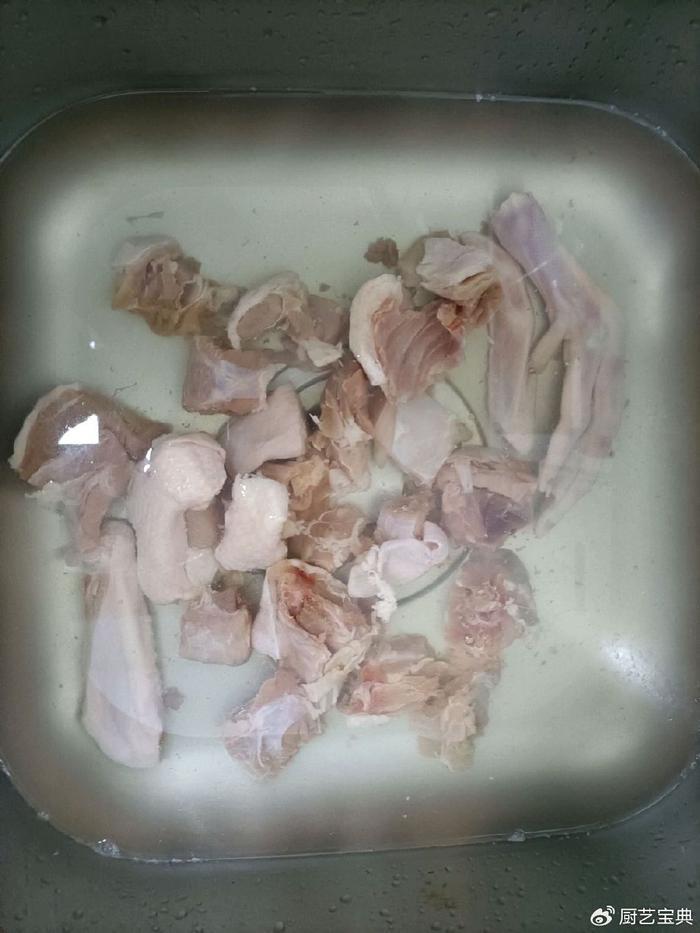 首先,我们将鸭子洗净,剁成块状,准备好了这道美味的主角。