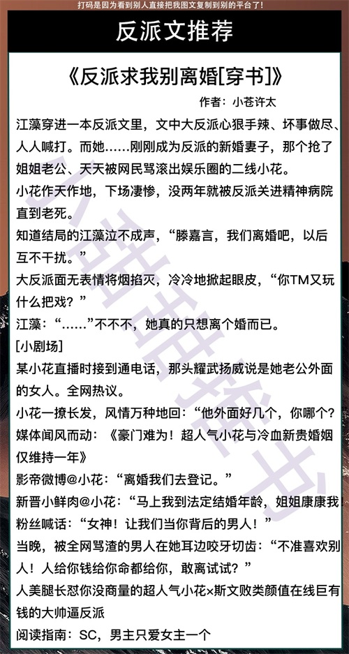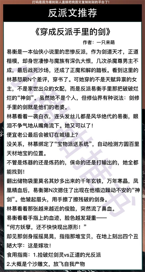 求关注,求转发,求点赞,求评论!大家好,我是小甜甜,每天给大家推荐好文。这期给大家推荐的是10本穿书文反派系列!有现言,有仙侠文!