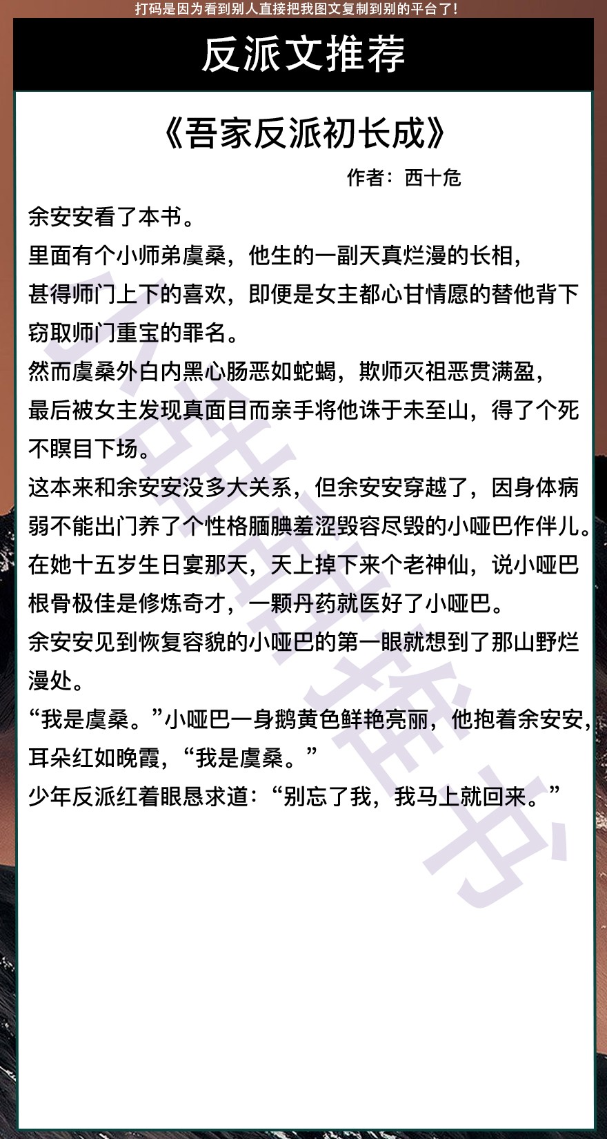 第九本《吾家反派初长成》作者:西十危