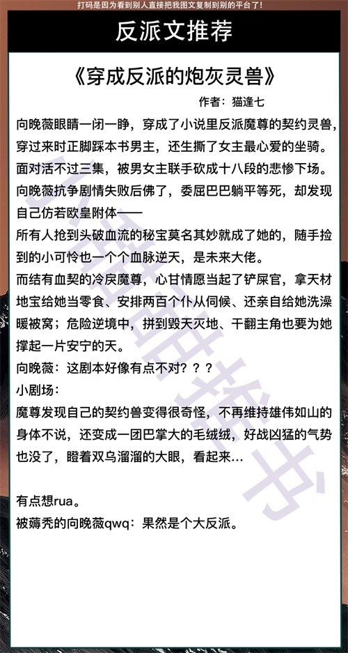 第二本《穿成反派的炮灰灵兽》作者:猫逢七
