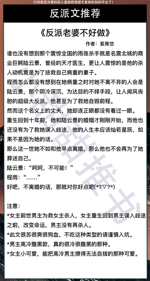 第四本《反派老婆不好做》作者:紫青悠