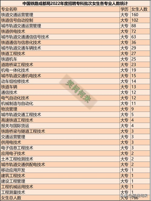 2022年成都铁路局一批招聘女生各专业情况