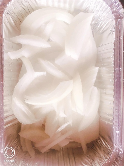 准备锡纸盒,调料店就有卖的。锡纸盒下面放切好的洋葱。