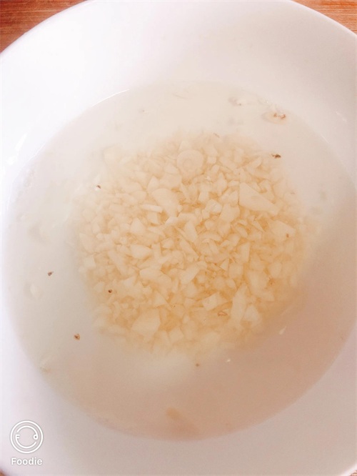 切好蒜后,把蒜末过水洗一下,去除蒜中的黏液。