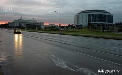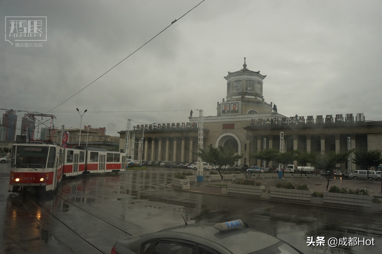 雨中的平壤火车站,没有想象中的车水马龙。