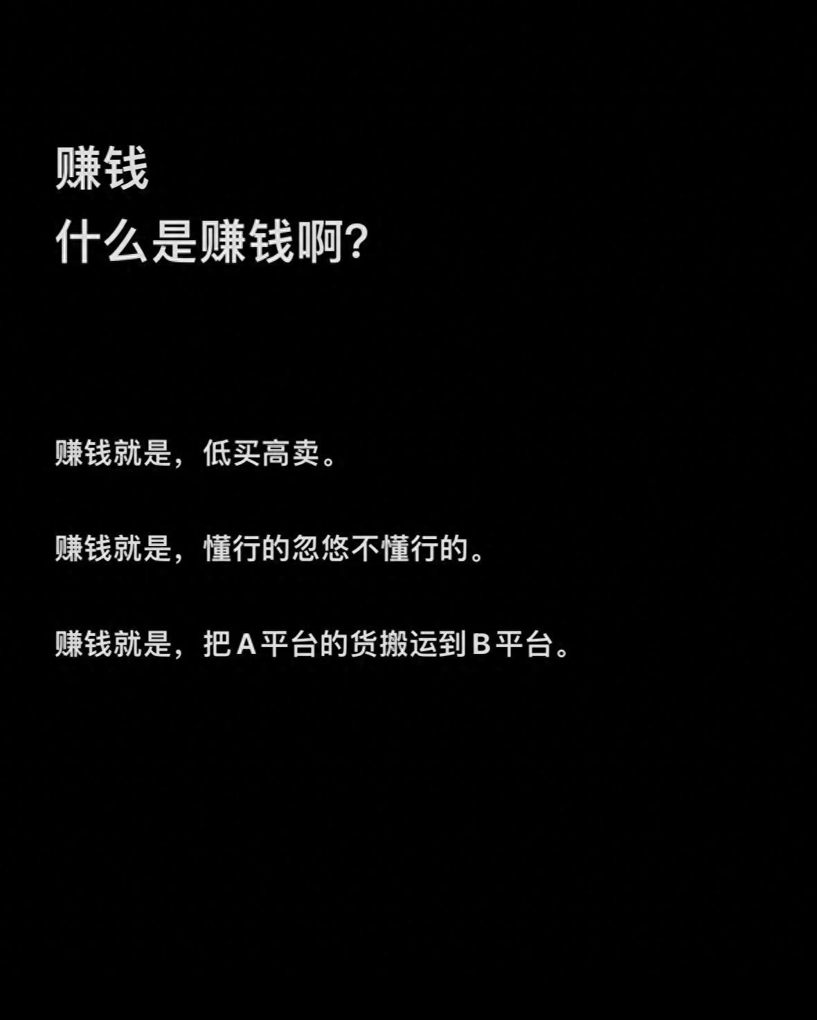 资源搬运能赚钱:把 A 平台的货搬到 B 平台,或者把南方的特色货拉到北方卖,北方的好物带到南方,国内外货物互相倒腾,都可能从中获利哦。