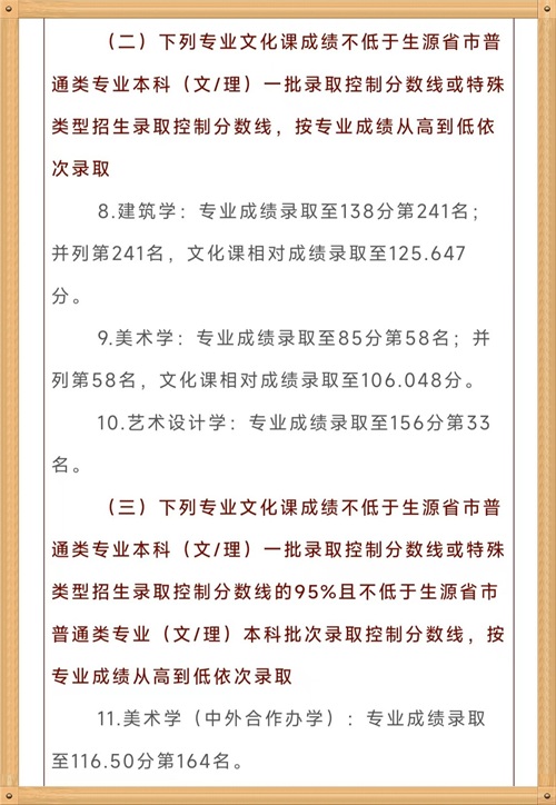 一,中国美术学院的美术学及设计类排名在1千名左右,其他的专业录取位次均要在200以内,竞争还是非常激烈的,说明艺术分占分还是很高的。