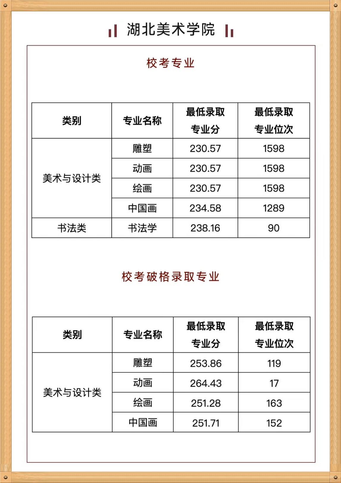 截止今天,美术生喜欢的中国八大美院录取分数线均已公布,小编也给美术学子整理了今年八大美院的本科录取分数线(排名无特定顺序):中央美术学院、中国美术学院、湖北美术学院、天津美术学院、鲁迅美术学院、广州美术学院、四川美术学院、西安美术学院。这些八大美院录取名次及专业,美术学子们你们要收藏起来,给往后的学习报考作一个参考。