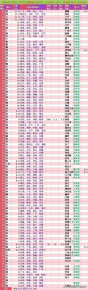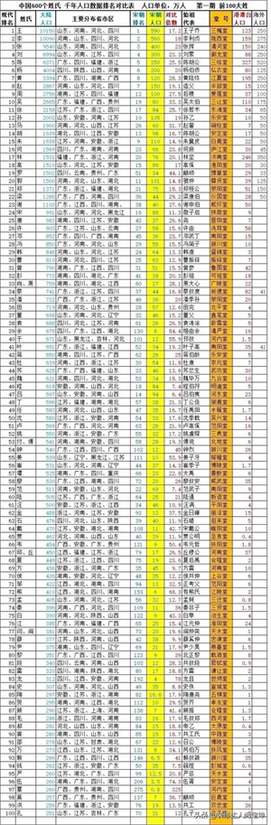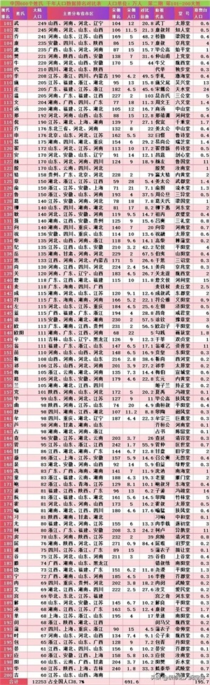 百家姓前605个姓氏排名