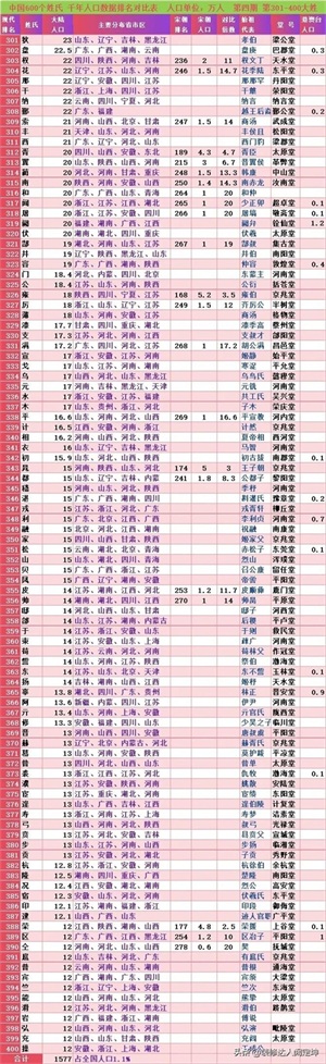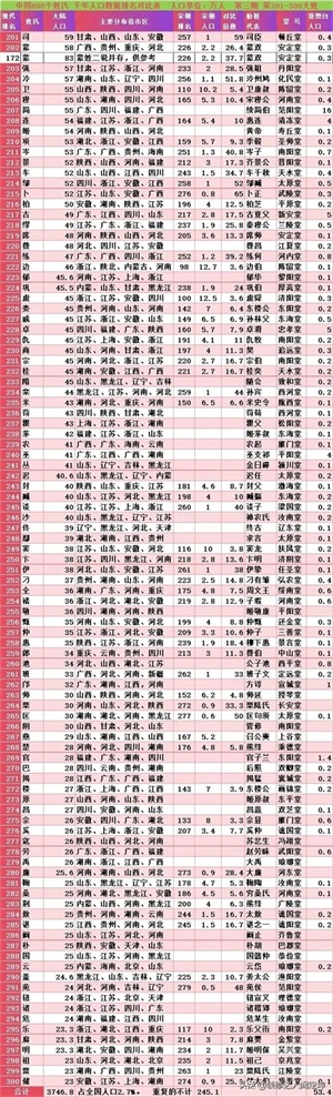 参考:①2020年4月9日本人的《2022你的姓排第几?我312》收集2万人以上602大姓。