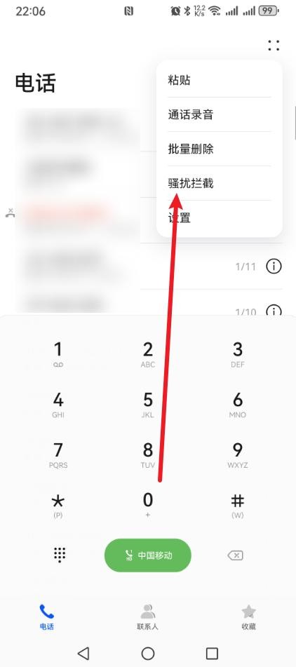 第一步:在上面第二步能看到有一个【骚扰拦截】选项,点击它;