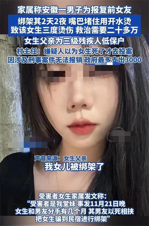 太可怕!20岁女孩被前男友绑架虐待2天2夜,男友投案,家属发声