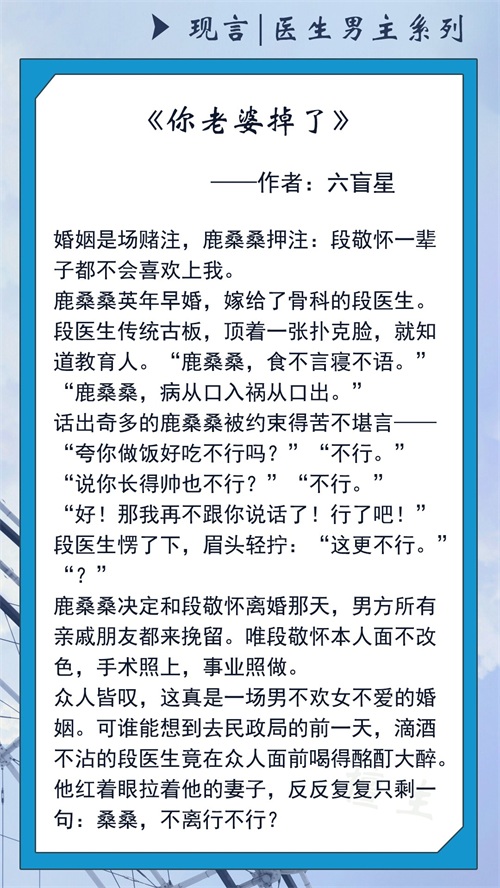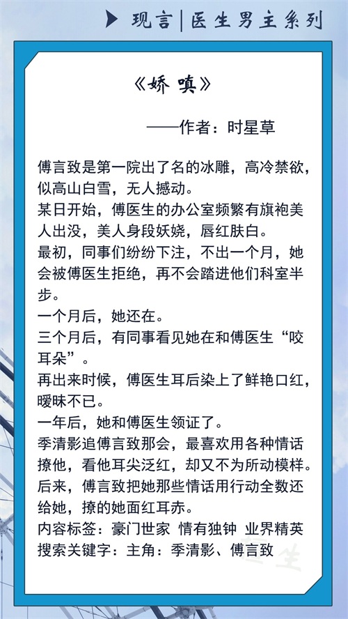 推荐五本「医生男主系列」甜文,他高冷自律,只对女主的撩拨动情