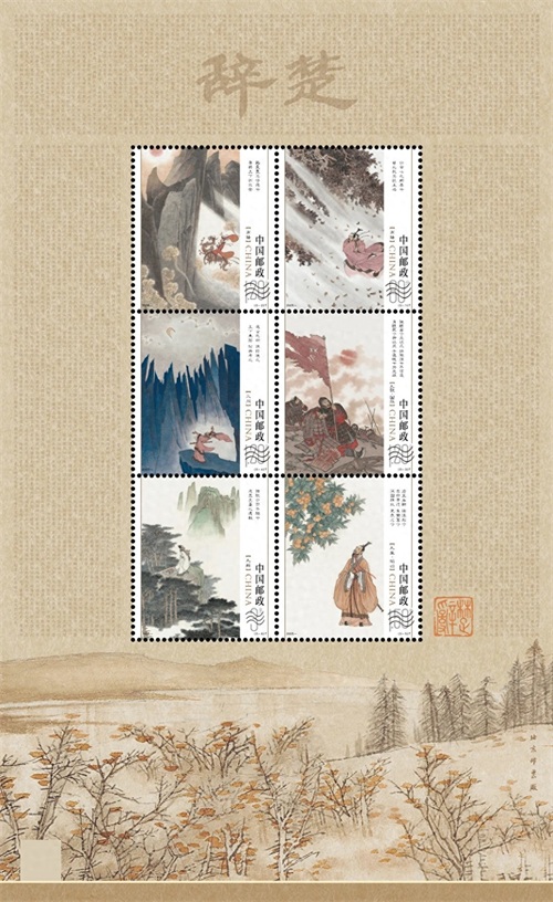 中国邮政定于5月31日端午节发行2025-8《楚辞》邮票,在延续唐诗宋词系列的同时向古代先贤屈原致敬。