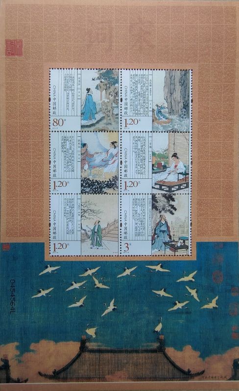 邮票从《楚辞》中选取了比较有代表性的6句诗句,配以绘画艺术表现。内容分别是: